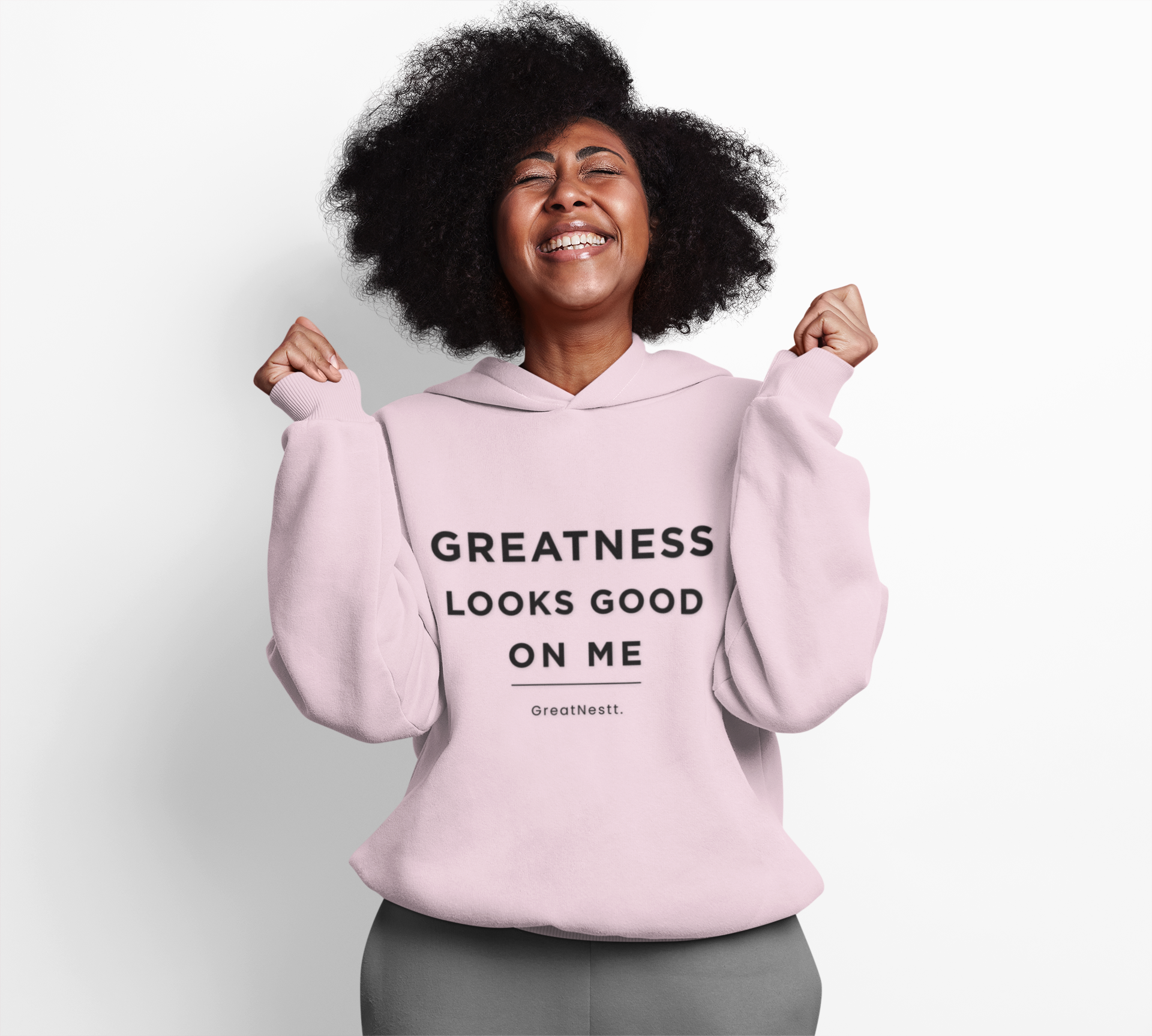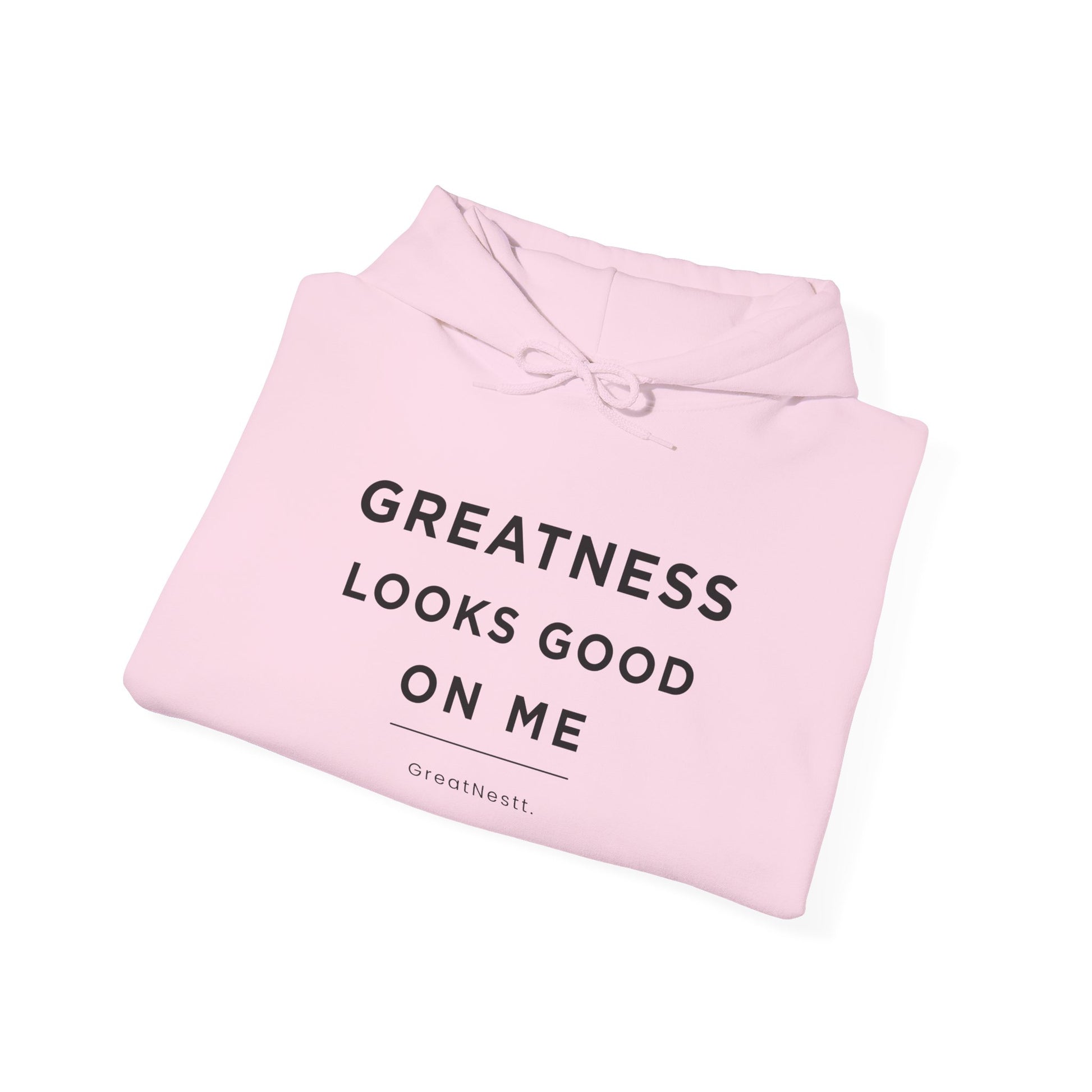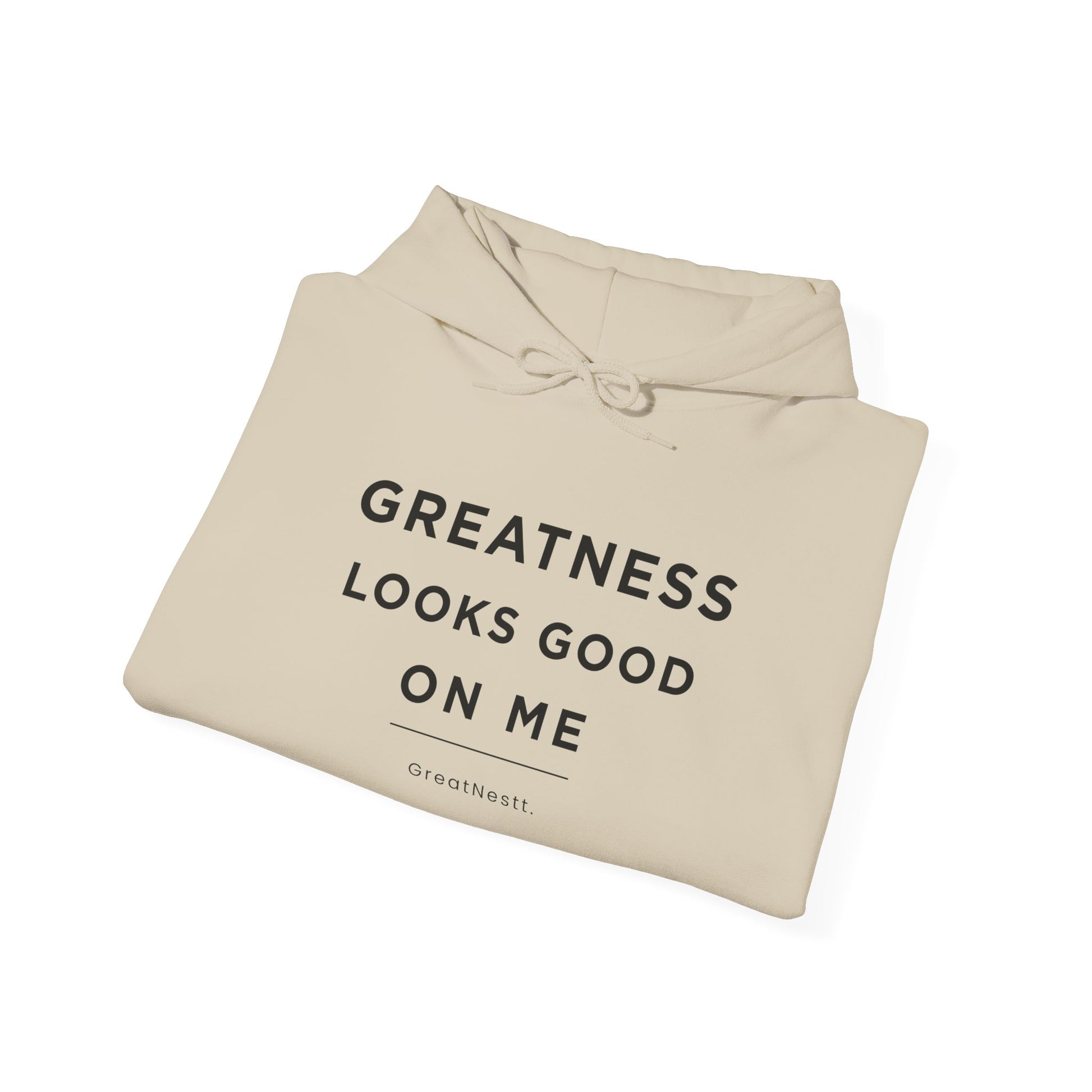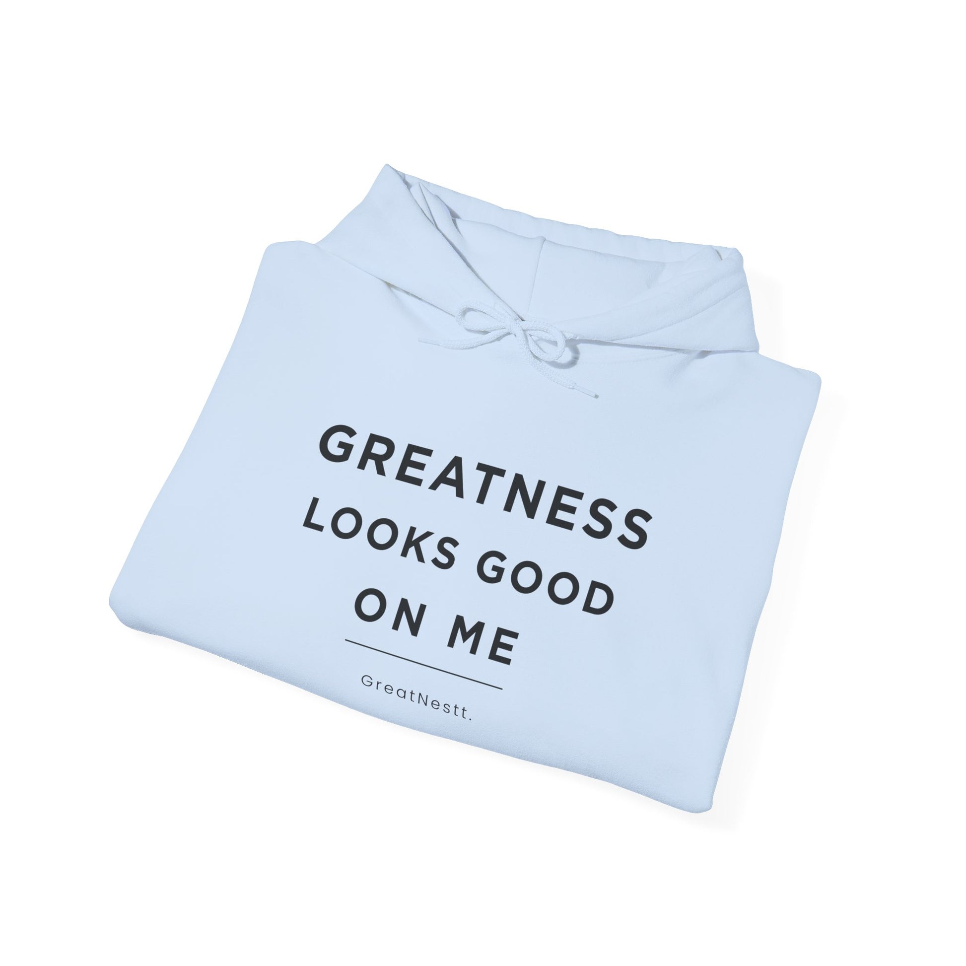 Hoodie — "Greatness Looks Good on Me" Minimal Motivational Pullover